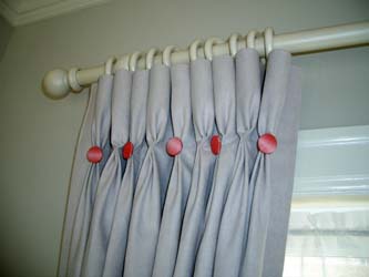 カーテンのヒダ(2倍)をコブレットスタイルにして、そのボトムにクルミボタンを