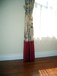 カーテンのトップを薄手のレース(できれば色つきで透け感のあるもの)で芯地と一緒に
